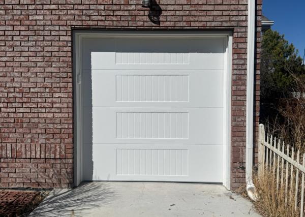 14X10 Amarr Lincoln True White Flush Panel overhead door with 25 gauge exterior steel